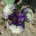 YOUNGLING M.Smith’05. HM’08.7,5”ML. RE. Кремово-белый цветок с тёмно-фиолетовыми пестиками, пликатной лентой на S и лучами на F. Ремонтирует. |