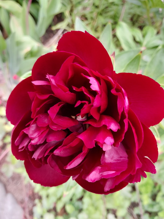 Пион, который был утерян и вновь возрождён. Облик этого растения позволяет считать его гибридом неизвестного происхождения. Цветки одиночные, махровые, розовидного типа. Лепестки атласные, редкий настоящий вишнёвый или чёрно-вишнёвый цвет. Лёгкий аромат. Чистая листва. Стебли 80 см. Среднеранний. Редкий. На данный момент нарастает медленно. Продолжим наблюдения.