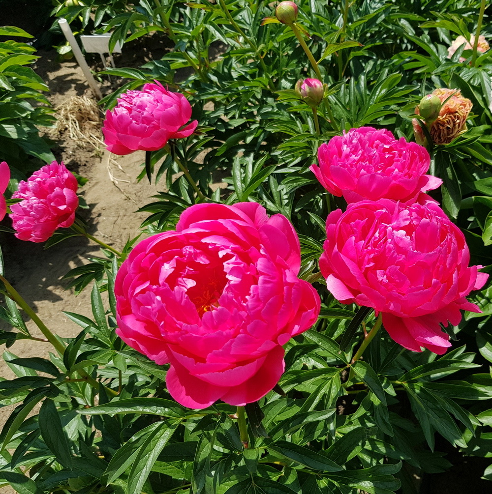 ГПолукарликовый(65см) гибрид раннего срока цветения. Цветки махровые или полумахровые, одиночные, Ф 17см, ароматные, хорошей субстанции, тёмно-розово-красные как и рыльца пестиков. Фантастически яркие цветки делают сорт подобным маяку в саду. Стебли крепкие. Листья чистые, тёмно-зелёные, с узкими долями, лодочкой. Предположительно, гибрид пиона узколистного и сестра похожего сорта Charismatic. Соответствует названию.