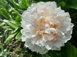 Цветок крупный(18см), густомахровый, шаровидный, очень плотного сложения. При роспуске нежно-розовый, затем чисто-белый, возможны тонкие пурпурные метки по краям некоторых лепестков. Куст компактный, стебли прочные, 75см. E