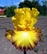 BUCCANEER'S PRISE Blyth’09/10. 36” EM Сильный насыщенный красно-бордовый с бархатными чуть более тёмными F. В – яркие горчичные. Гофрированные душистые цветки прекрасно сбалансированы. Три цветка открываются одновременно, что делает его отличным ранним выставочным ирисом. Обильное цветение создаёт цветовое пятно в саду. Фертилен, имеет разнообразную родословную, которая, как мы ожидаем, проявится в сеянцах, полученных от него. |