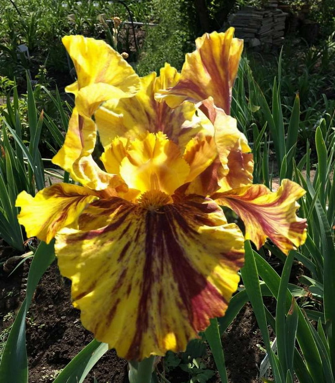 INSANIAC T.Johnson’12. 33” M. HM’14 AM’16 Wister Medal 2019 Сумасшедший цвет и узор! Является иной колористической комбинацией “Wild Angel”. Золотая кромка на S и пестиках – прелестный акцент. Цветки полные и гофрированные |