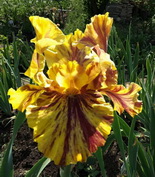 INFERNAL FIRE Richardson’94. 32” E-M. HM’97 Тип окраски- разбитый цвет: по бежево-золотому полю S и F хаотично разбросаны красно-пурпурные(мажента) пятна, брызги, линии. Нет одинаковых цветков. Золотисто-оранжевые В. Лёгкий аромат. |