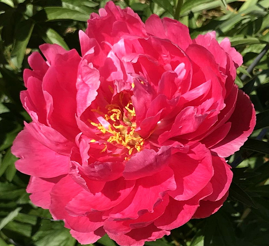 ГПолукарликовый(65см) гибрид раннего срока цветения. Цветки махровые или полумахровые, одиночные, Ф 17см, ароматные, хорошей субстанции, тёмно-розово-красные как и рыльца пестиков. Фантастически яркие цветки делают сорт подобным маяку в саду. Стебли крепкие. Листья чистые, тёмно-зелёные, с узкими долями, лодочкой. Предположительно, гибрид пиона узколистного и сестра похожего сорта Charismatic. Соответствует названию.