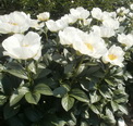 Цветок крупный(18см), густомахровый, шаровидный, очень плотного сложения. При роспуске нежно-розовый, затем чисто-белый, возможны тонкие пурпурные метки по краям некоторых лепестков. Куст компактный, стебли прочные, 75см. E